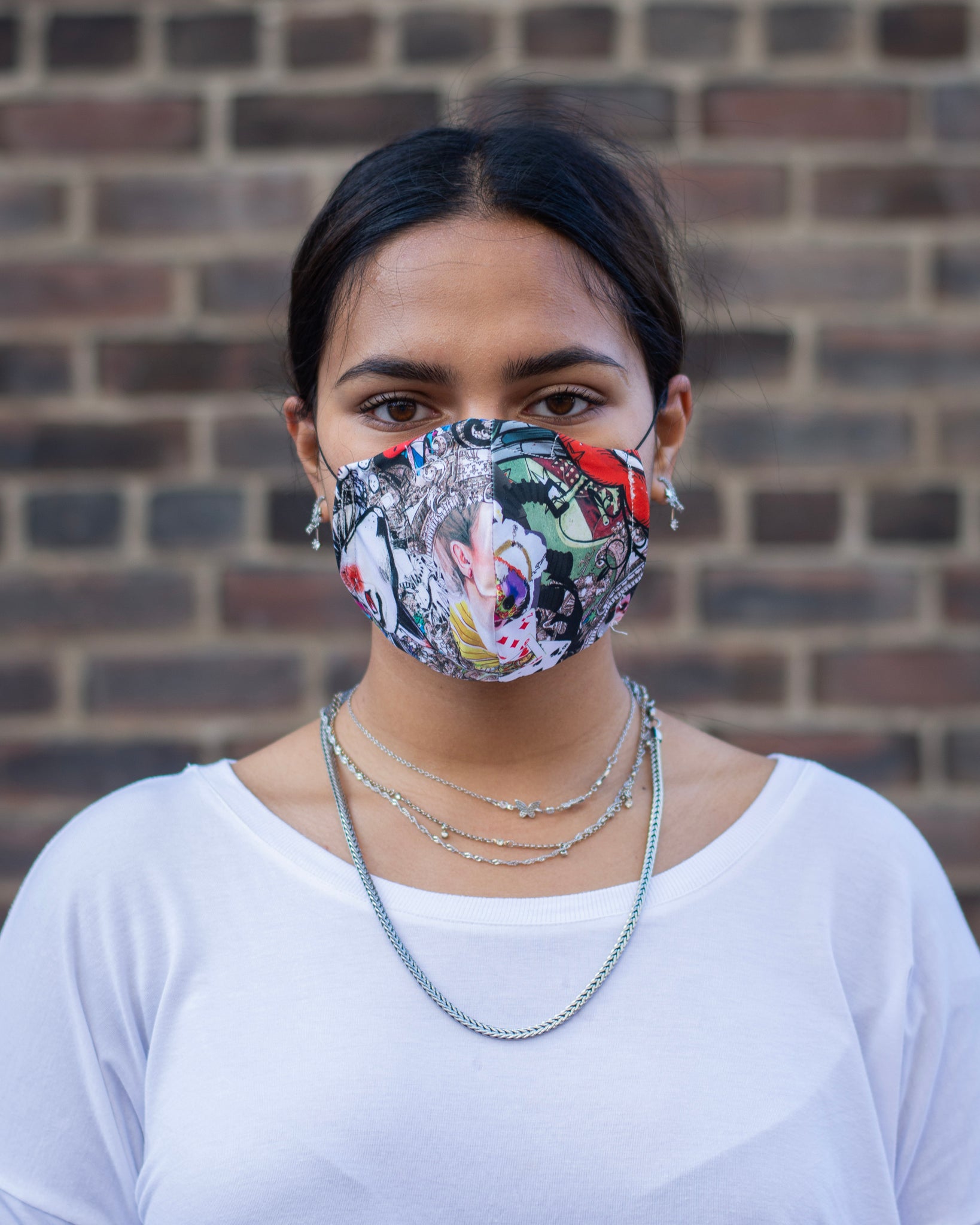Alice In Wonderland inspired cotton face cover with lots of vibrant colours